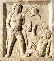 Le dimachaerus n'est pas une catégorie de gladiateurs. Deux hypothèses sont possibles : il peut s’agir soit d’un combattant qui, au cours du duel, parvient à saisir l’épée de son adversaire et combattre ainsi avec deux armes (mais que fait-il de son bouclier dans ce cas ?), soit plus probablement d’un combattant ambidextre, capable d’escrimer tantôt de la main droite, tantôt de la main gauche, ce qui devait être redoutablement déconcertant pour ses adversaires. (Ci-contre, un gladiateur provocator qui a ramassé l’épée de son adversaire vaincu) . |